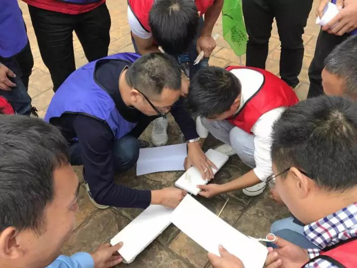時值國慶期間,酷暑已過,正是秋高氣爽的好天氣。一大早三民團隊就出發(fā)了,在欣賞了沿途的美景之后,終于抵達了目的地。稍作休整,在教練的統(tǒng)一部署下,將成員們分成了四個小組,每個小組選出一名隊長,并為每個小組穿上了不同顏色的隊服,以及相同顏色的隊旗。一切就緒,拓展訓(xùn)練即將展開。