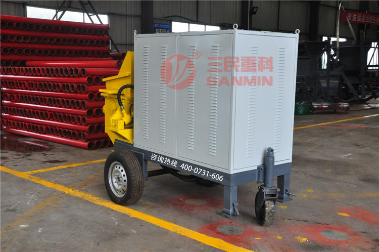 三民重科A2系列大型混凝土輸送泵是一款高速隧道用的大型混凝土泵車,該泵車的液壓系統(tǒng)大大提高了機器的整體可靠行是一種通過管道壓送混凝土,進行水平和垂直運輸并澆注混凝土的施工機械。其原理是由電動機帶動油泵產生的壓力油驅動油缸,油缸活塞桿帶動混凝土缸活塞把混凝土推入輸送管道,通過混凝土分配閥和主油缸之間的順序動作,使混凝土不斷從混凝土料斗吸入混凝土缸并通過輸送管道輸送到澆注地點。