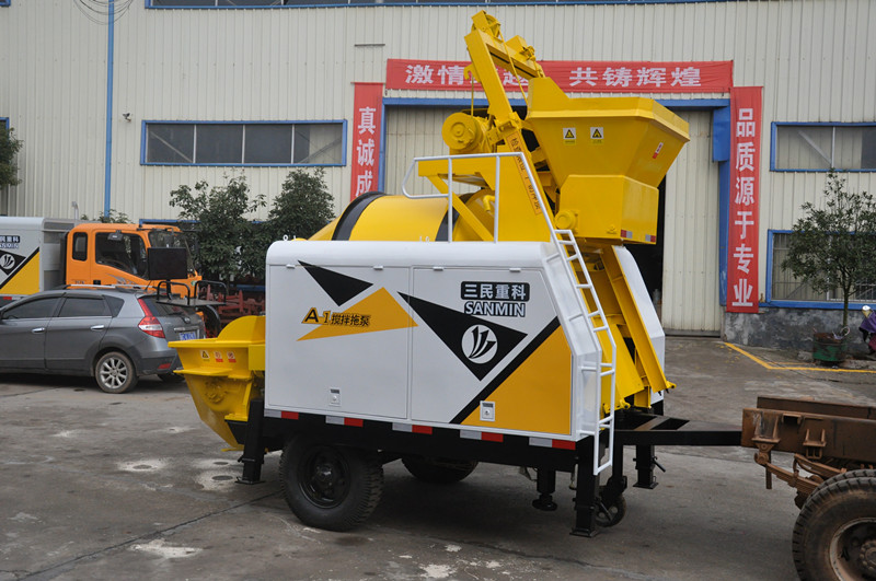 攪拌拖泵,顧名思義就是攪拌機+拖泵。攪拌機可以選擇350和450,以及500?;炷帘每梢赃x擇30泵,40泵,50泵。