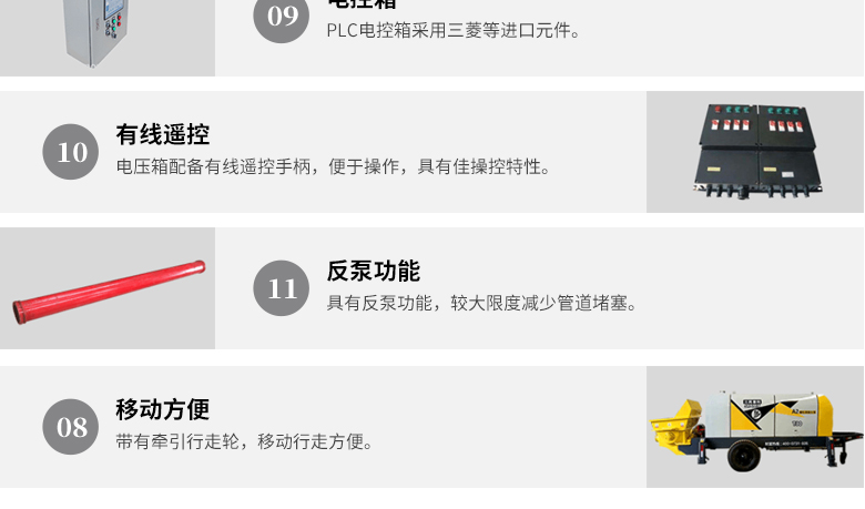 簡(jiǎn)介:1、采用先進(jìn)S管閥換向,出口壓力高,能滿足細(xì)石混凝土高層和遠(yuǎn)距離輸送 2、主油泵采用優(yōu)質(zhì)恒功率變量柱賽泵,系統(tǒng)壓力高,效能高,運(yùn)行平衡。