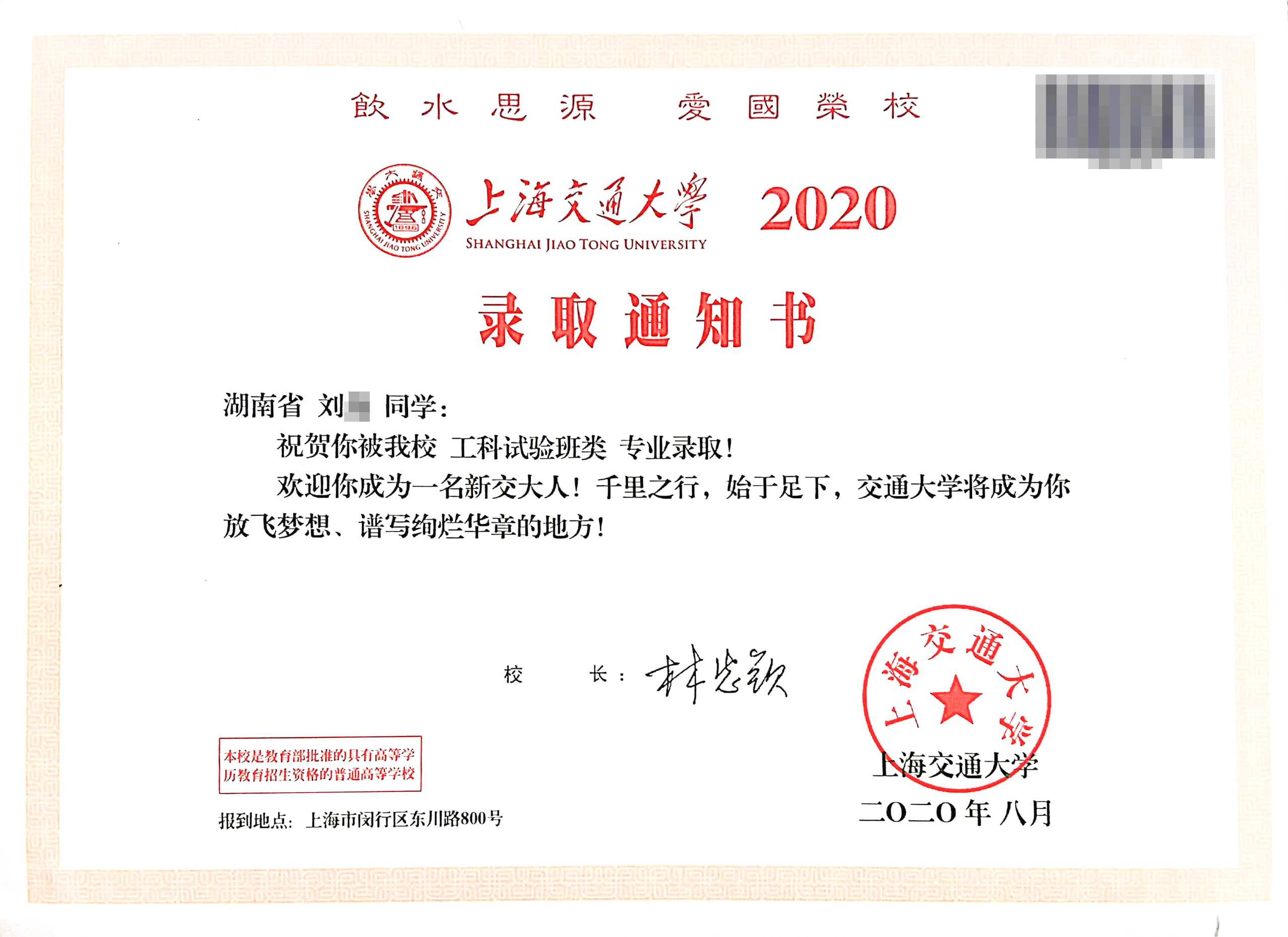 十年寒窗終有報,春風(fēng)得意馬蹄疾,恭喜我司劉書記貴子:劉晟,以675分金榜題名-上海交通大學(xué)!