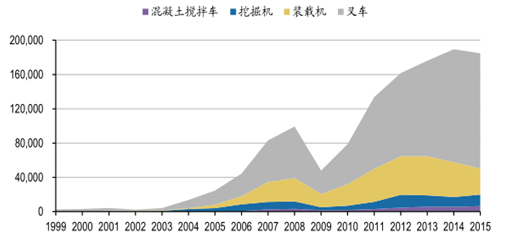 中國工程機(jī)械出口主要產(chǎn)品銷量(臺)