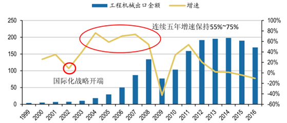 二十世紀(jì)九十年代,我國工程機(jī)械開始出口,彼時工程機(jī)械技術(shù)水平較國際水平差距較大,加之銷售渠道少,出口量極少。進(jìn)入二十一世紀(jì),國內(nèi)各大工程機(jī)械企業(yè),都開始將國際化作為公司的核心戰(zhàn)略之一,中國工程機(jī)械企業(yè)的國際化之路就此開始。